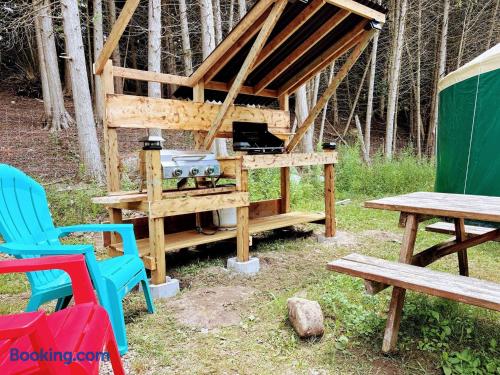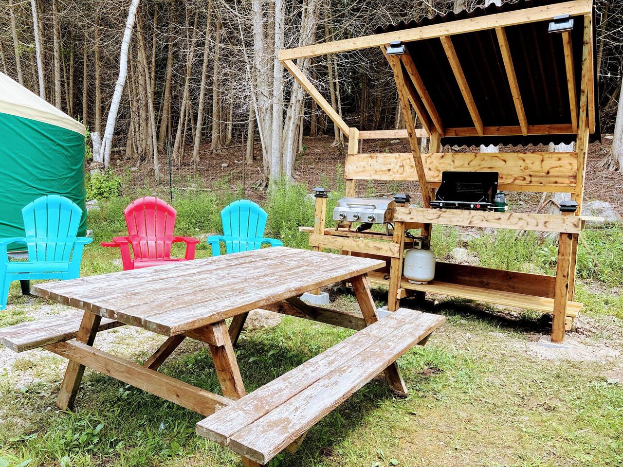The yurt sleeps 4 people with a comfy double bed and sofa bed, you can bring additional camping bedding , perfect for a couple or 3 adults or small families. YOU MUST BRING OWN BEDDING! (Bed sheets, pillows, and blankets, Cozy rugs, soft carpet and furnishing and thoughtful lighting create a relaxing atmosphere after a day of exploring. The wood-panel walls and canvas ceiling give off an earthy, cabin-in-the-woods vibe — but with extra soul. Cook Like You're Home — But in the Wild You'll have everything you need to prepare great meals, including: • Full kitchen setup with utensils, pots, dishes • Burner stove & BBQ grill • Spices, oil, and other essentials • Indoor & outdoor dining areas to match your mood • Outdoor cooking made easy with a burner stove and BBQ. Enjoy tranquil water views, stargazing, and sunrises right outside your yurt. There’s nothing like grilling beside the lake at sunset or sipping your morning coffee while listening to birdsong. Adventure On-Site & Nearby: • Paddle the lake in a canoe, fish off the dock, or hike the local trails • Stargaze in total darkness, free from city lights • Just 15 mins from Lake Huron’s sandy beaches • Enjoy a guided tour with local expert Bruce – from nature walks to farm visits • Reconnect with nature without giving up creature comforts On-site activities include: • Canoeing on the lake • Fishing • Trekking and nature walks • Easy access to the Bruce Trail for unforgettable hiking • A scenic Lake Huron beach just 15 minutes away Extra Services Available On-Site: • Propane tank refills • Bags of ice • Fresh drinking water • Firewood bundles • Canoe rentals • Fishing rod & tackle rentals