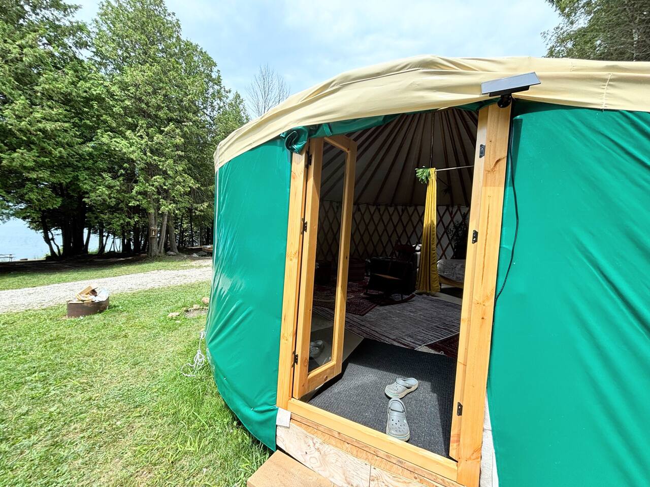 Escape to nature in our cozy, private yurt sanctuary just 30 minutes from Tobermory — where rustic charm meets cozy convenience on the tranquil shores of SkyLake. Surrounded by forest, sky, and water, this unique space offers a truly magical retreat into nature. A fully equipped yurt, nestled on a 2-acre waterfront property at SkyLake Resort. This peaceful retreat is perfect for couples, friends, or small families looking to unwind and explore the breathtaking beauty of the Bruce Peninsula.