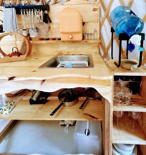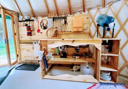 We do have several other Yurts, camping and cottages in the area and from time to time they might interact with them. The property is large and vast and most of the time the experience is private. We do not live on-site. We have several staff who work 24 hours daily. Please note the double bed sleeps two adult, the sofa bed sleeps max two kids. and the floor matress is a single matress available by availability or request. You can bring your won blow up matress. Important we do not offer any Pillows, bed sheets, towels and blankets. Please remeber to bring your own.