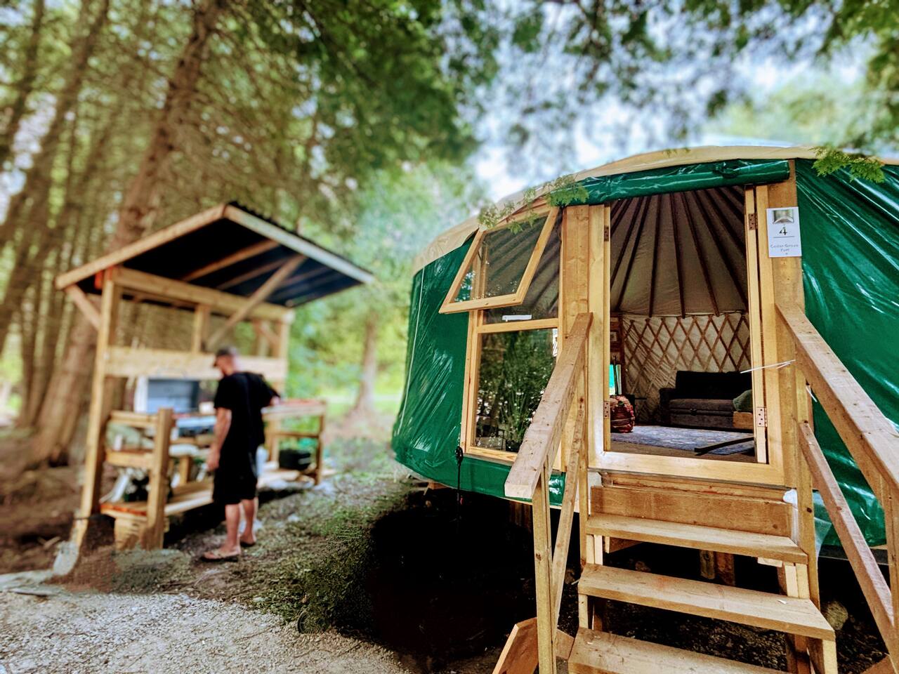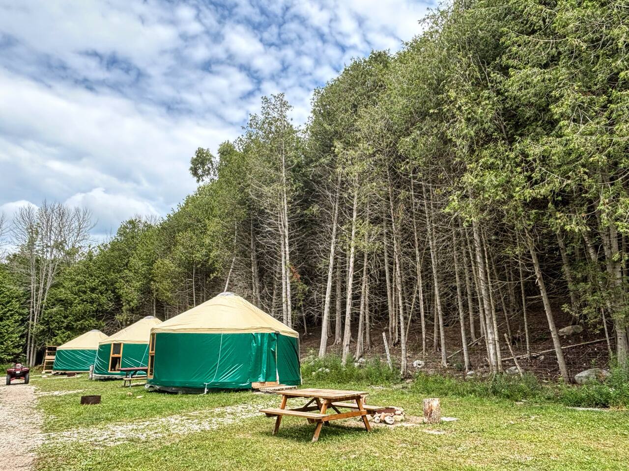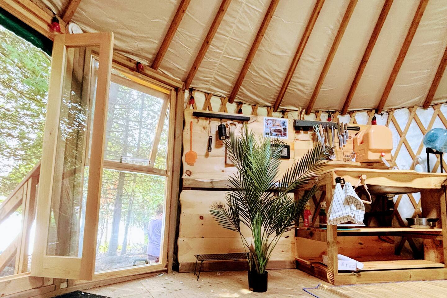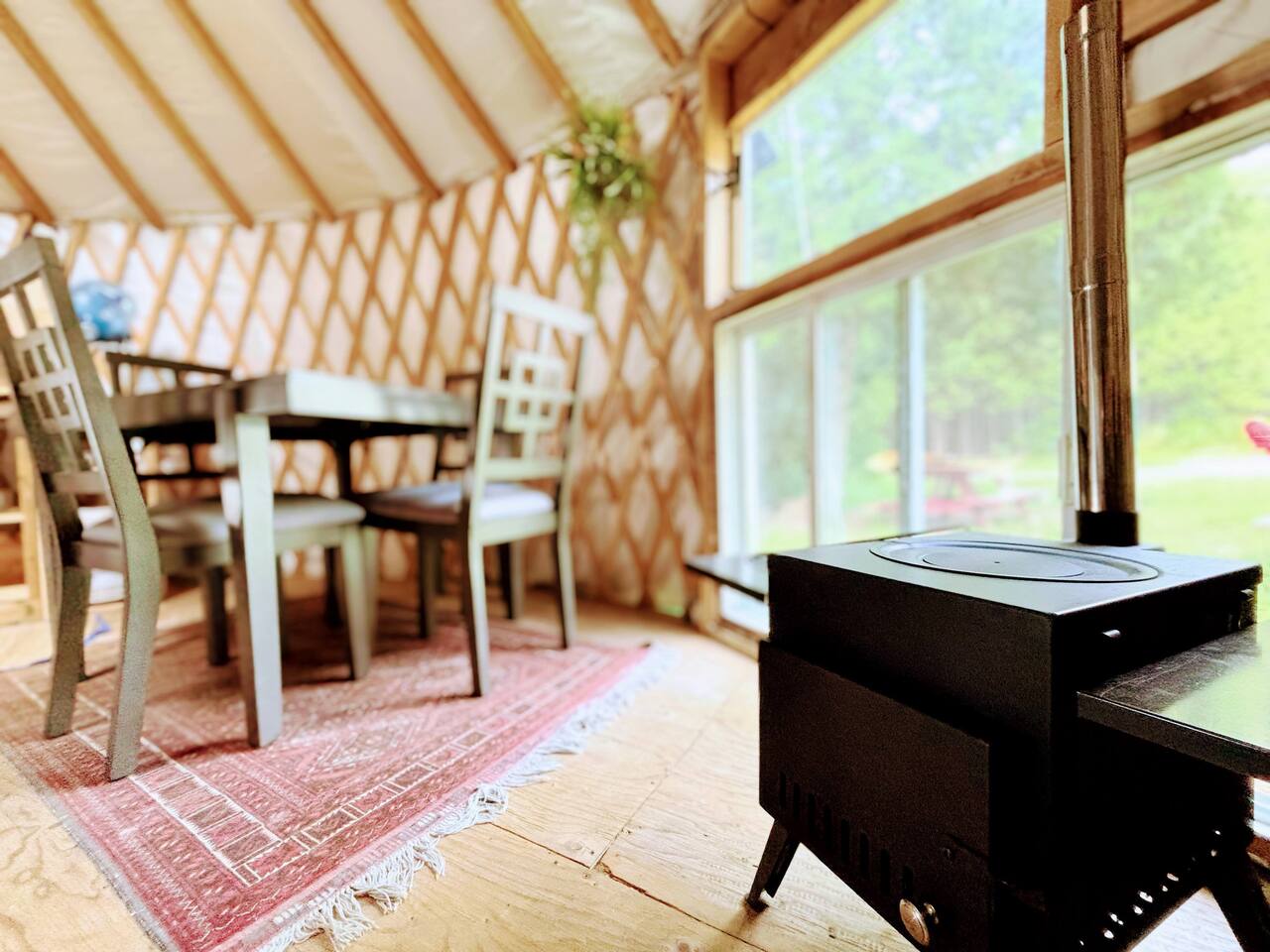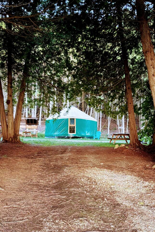 The yurt sleeps 4 people with a comfy double bed and sofa bed, you can bring additional camping bedding , perfect for a couple or 3 adults or small families. YOU MUST BRING OWN BEDDING! (Bed sheets, pillows, and blankets, Cozy rugs, soft carpet and furnishing and thoughtful lighting create a relaxing atmosphere after a day of exploring. The wood-panel walls and canvas ceiling give off an earthy, cabin-in-the-woods vibe — but with extra soul. Cook Like You're Home — But in the Wild You'll have everything you need to prepare great meals, including: • Full kitchen setup with utensils, pots, dishes • Burner stove & BBQ grill • Spices, oil, and other essentials • Indoor & outdoor dining areas to match your mood • Outdoor cooking made easy with a burner stove and BBQ. Enjoy tranquil water views, stargazing, and sunrises right outside your yurt. There’s nothing like grilling beside the lake at sunset or sipping your morning coffee while listening to birdsong. Adventure On-Site & Nearby: • Paddle the lake in a canoe, fish off the dock, or hike the local trails • Stargaze in total darkness, free from city lights • Just 15 mins from Lake Huron’s sandy beaches • Enjoy a guided tour with local expert Bruce – from nature walks to farm visits • Reconnect with nature without giving up creature comforts On-site activities include: • Canoeing on the lake • Fishing • Trekking and nature walks • Easy access to the Bruce Trail for unforgettable hiking • A scenic Lake Huron beach just 15 minutes away Extra Services Available On-Site: • Propane tank refills • Bags of ice • Fresh drinking water • Firewood bundles • Canoe rentals • Fishing rod & tackle rentals
