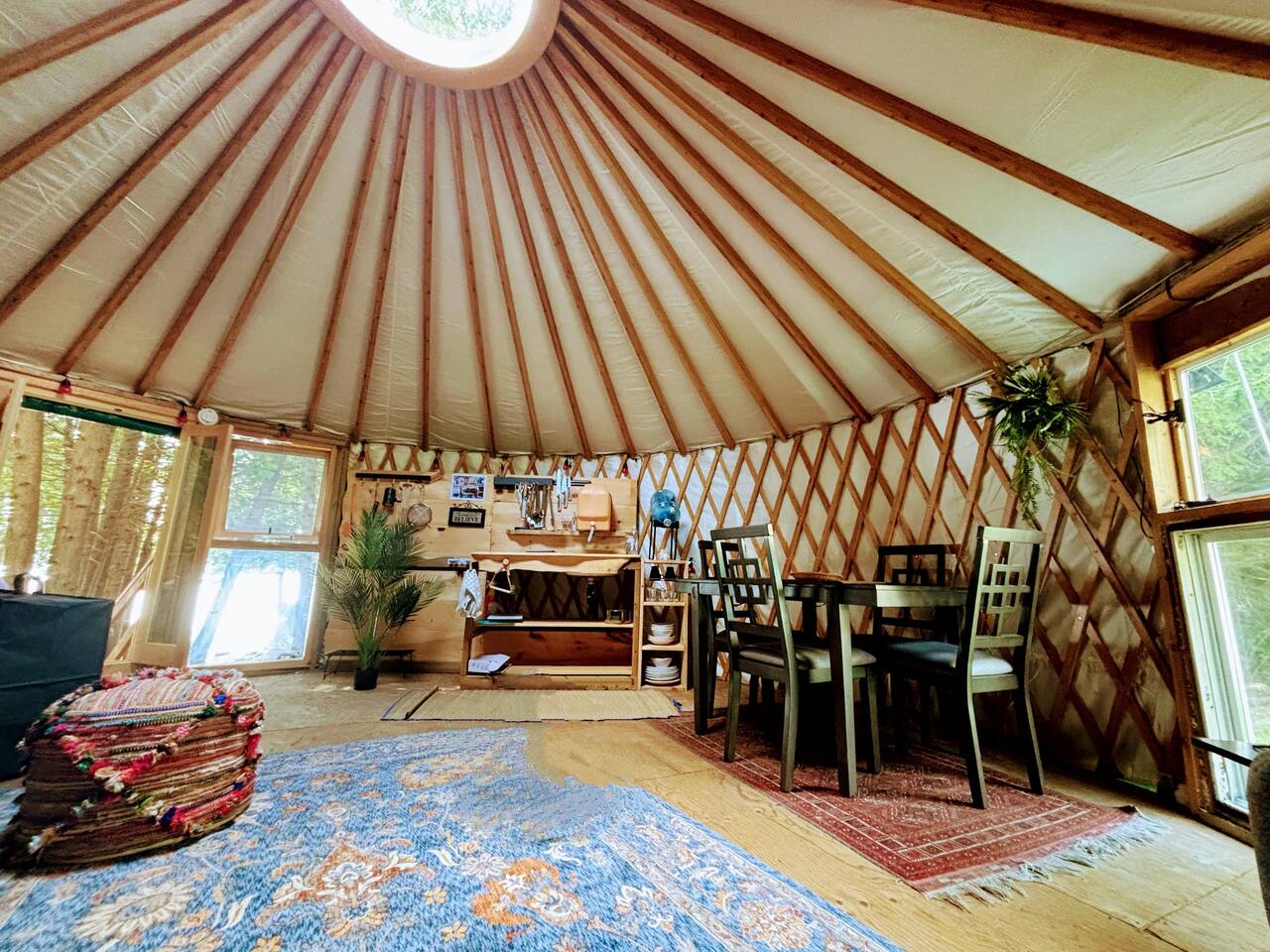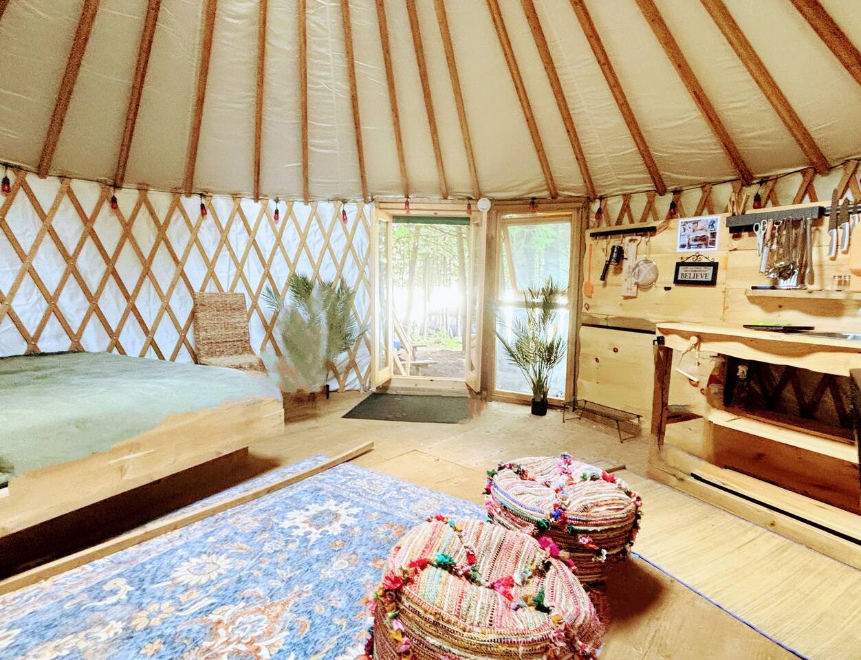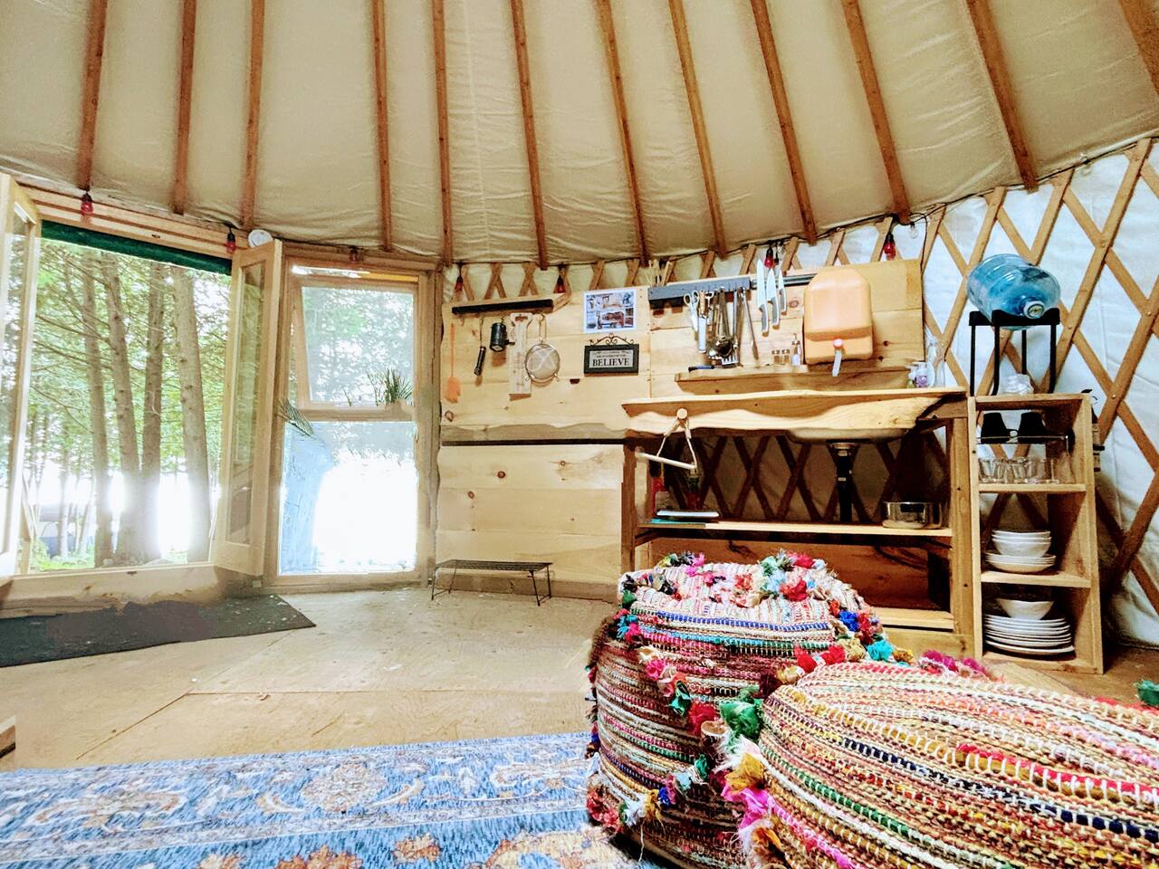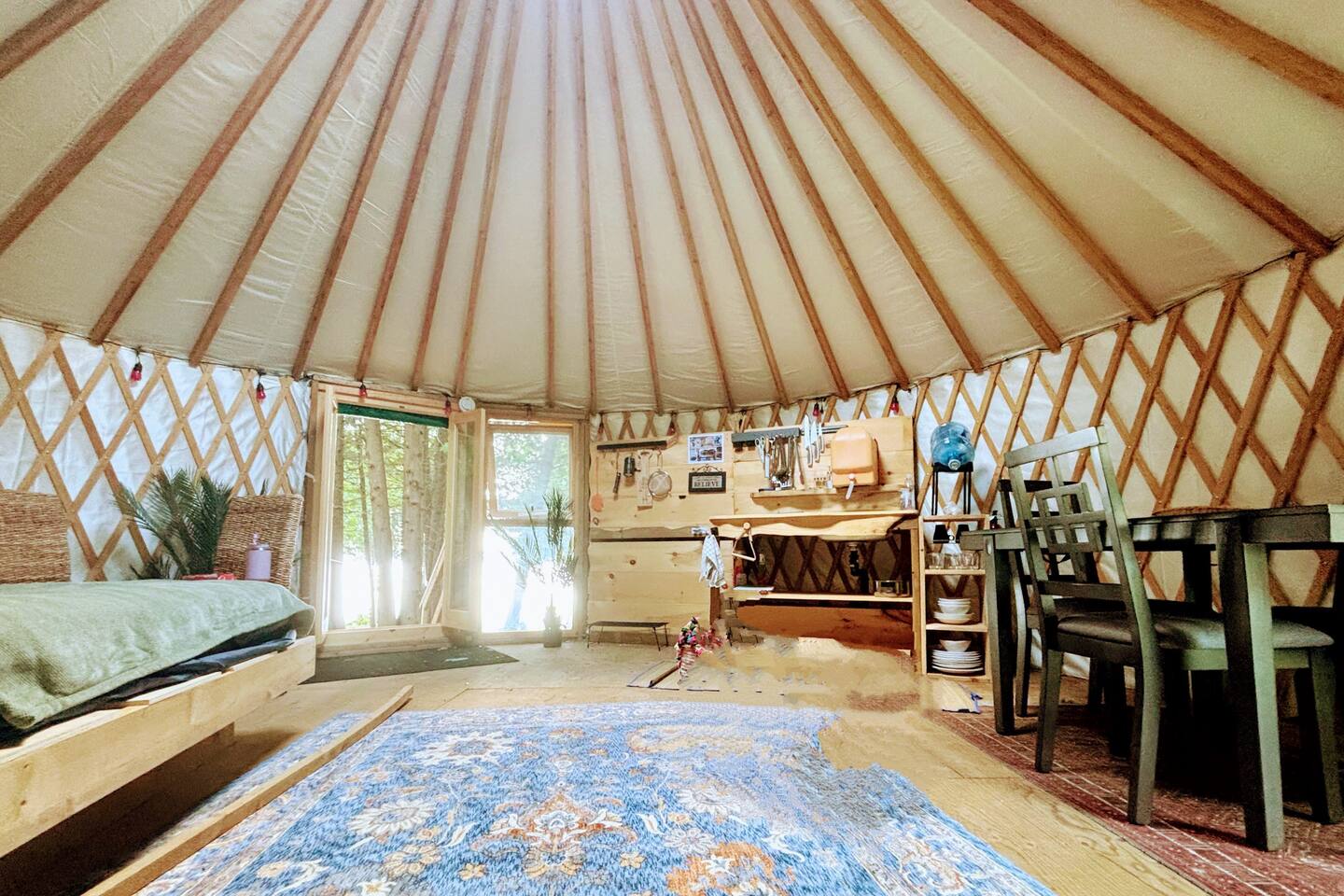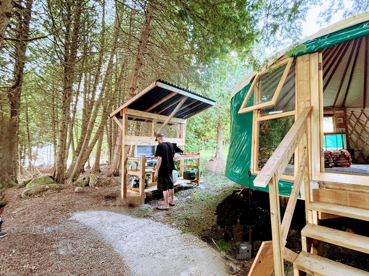The yurt sleeps 4 people with a comfy double bed and sofa bed, you can bring additional camping bedding , perfect for a couple or 3 adults or small families. YOU MUST BRING OWN BEDDING! (Bed sheets, pillows, and blankets, Cozy rugs, soft carpet and furnishing and thoughtful lighting create a relaxing atmosphere after a day of exploring. The wood-panel walls and canvas ceiling give off an earthy, cabin-in-the-woods vibe — but with extra soul. Cook Like You're Home — But in the Wild You'll have everything you need to prepare great meals, including: • Full kitchen setup with utensils, pots, dishes • Burner stove & BBQ grill • Spices, oil, and other essentials • Indoor & outdoor dining areas to match your mood • Outdoor cooking made easy with a burner stove and BBQ. Enjoy tranquil water views, stargazing, and sunrises right outside your yurt. There’s nothing like grilling beside the lake at sunset or sipping your morning coffee while listening to birdsong. Adventure On-Site & Nearby: • Paddle the lake in a canoe, fish off the dock, or hike the local trails • Stargaze in total darkness, free from city lights • Just 15 mins from Lake Huron’s sandy beaches • Enjoy a guided tour with local expert Bruce – from nature walks to farm visits • Reconnect with nature without giving up creature comforts On-site activities include: • Canoeing on the lake • Fishing • Trekking and nature walks • Easy access to the Bruce Trail for unforgettable hiking • A scenic Lake Huron beach just 15 minutes away Extra Services Available On-Site: • Propane tank refills • Bags of ice • Fresh drinking water • Firewood bundles • Canoe rentals • Fishing rod & tackle rentals