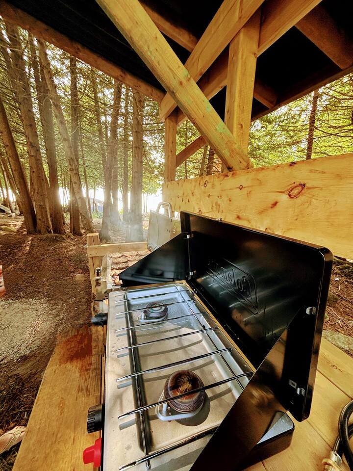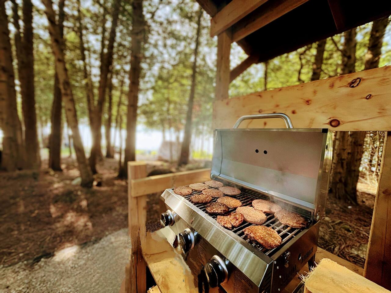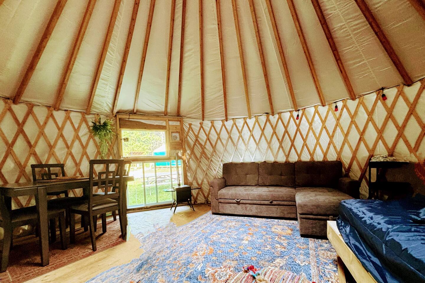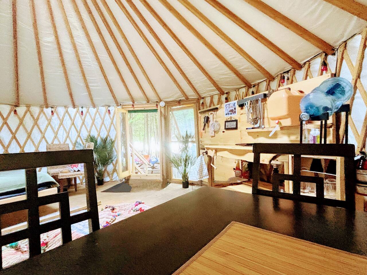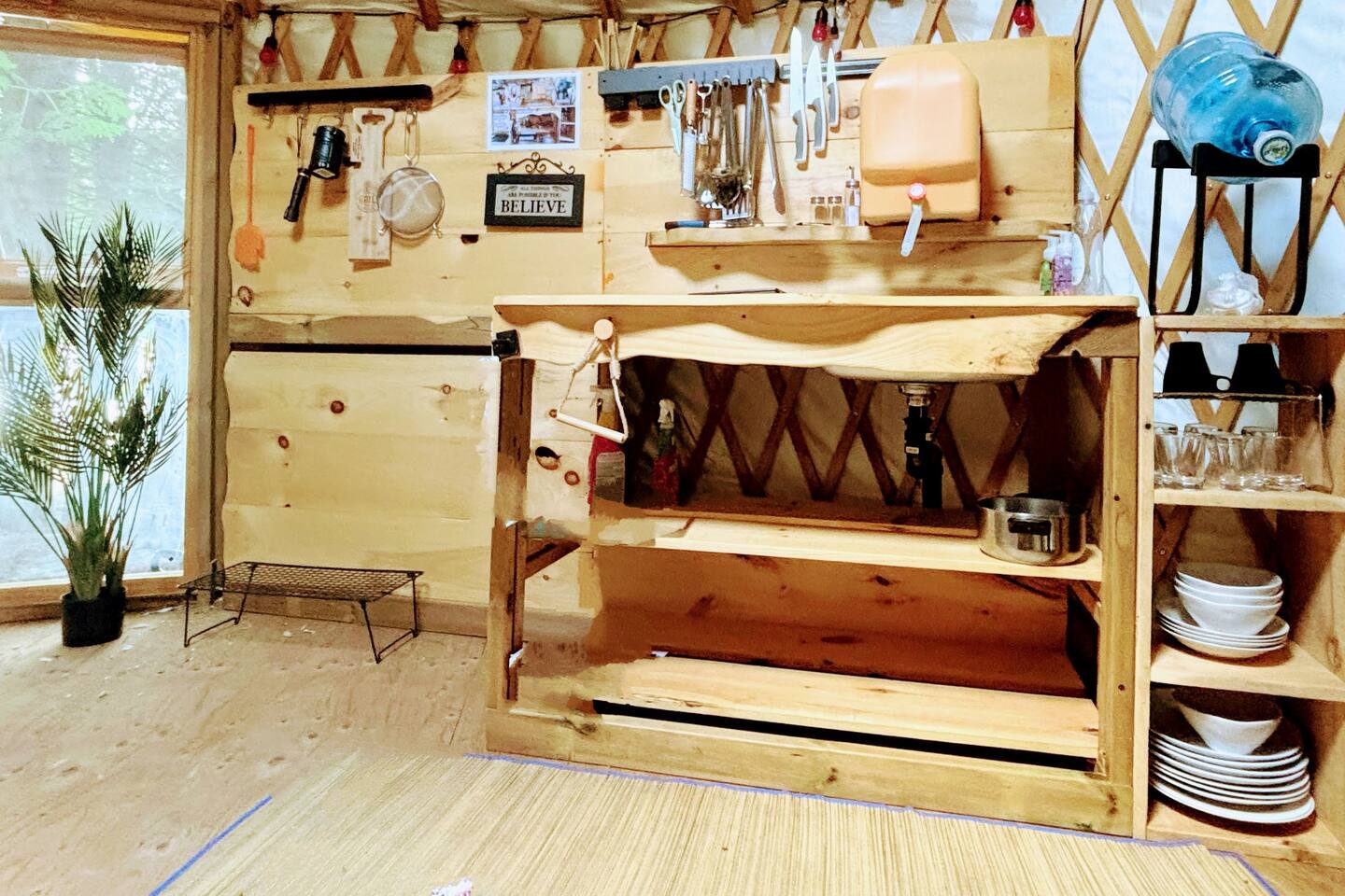The yurt sleeps 4 people with a comfy double bed and sofa bed, you can bring additional camping bedding , perfect for a couple or 3 adults or small families. YOU MUST BRING OWN BEDDING! (Bed sheets, pillows, and blankets, Cozy rugs, soft carpet and furnishing and thoughtful lighting create a relaxing atmosphere after a day of exploring. The wood-panel walls and canvas ceiling give off an earthy, cabin-in-the-woods vibe — but with extra soul. Cook Like You're Home — But in the Wild You'll have everything you need to prepare great meals, including: • Full kitchen setup with utensils, pots, dishes • Burner stove & BBQ grill • Spices, oil, and other essentials • Indoor & outdoor dining areas to match your mood • Outdoor cooking made easy with a burner stove and BBQ. Enjoy tranquil water views, stargazing, and sunrises right outside your yurt. There’s nothing like grilling beside the lake at sunset or sipping your morning coffee while listening to birdsong. Adventure On-Site & Nearby: • Paddle the lake in a canoe, fish off the dock, or hike the local trails • Stargaze in total darkness, free from city lights • Just 15 mins from Lake Huron’s sandy beaches • Enjoy a guided tour with local expert Bruce – from nature walks to farm visits • Reconnect with nature without giving up creature comforts On-site activities include: • Canoeing on the lake • Fishing • Trekking and nature walks • Easy access to the Bruce Trail for unforgettable hiking • A scenic Lake Huron beach just 15 minutes away Extra Services Available On-Site: • Propane tank refills • Bags of ice • Fresh drinking water • Firewood bundles • Canoe rentals • Fishing rod & tackle rentals